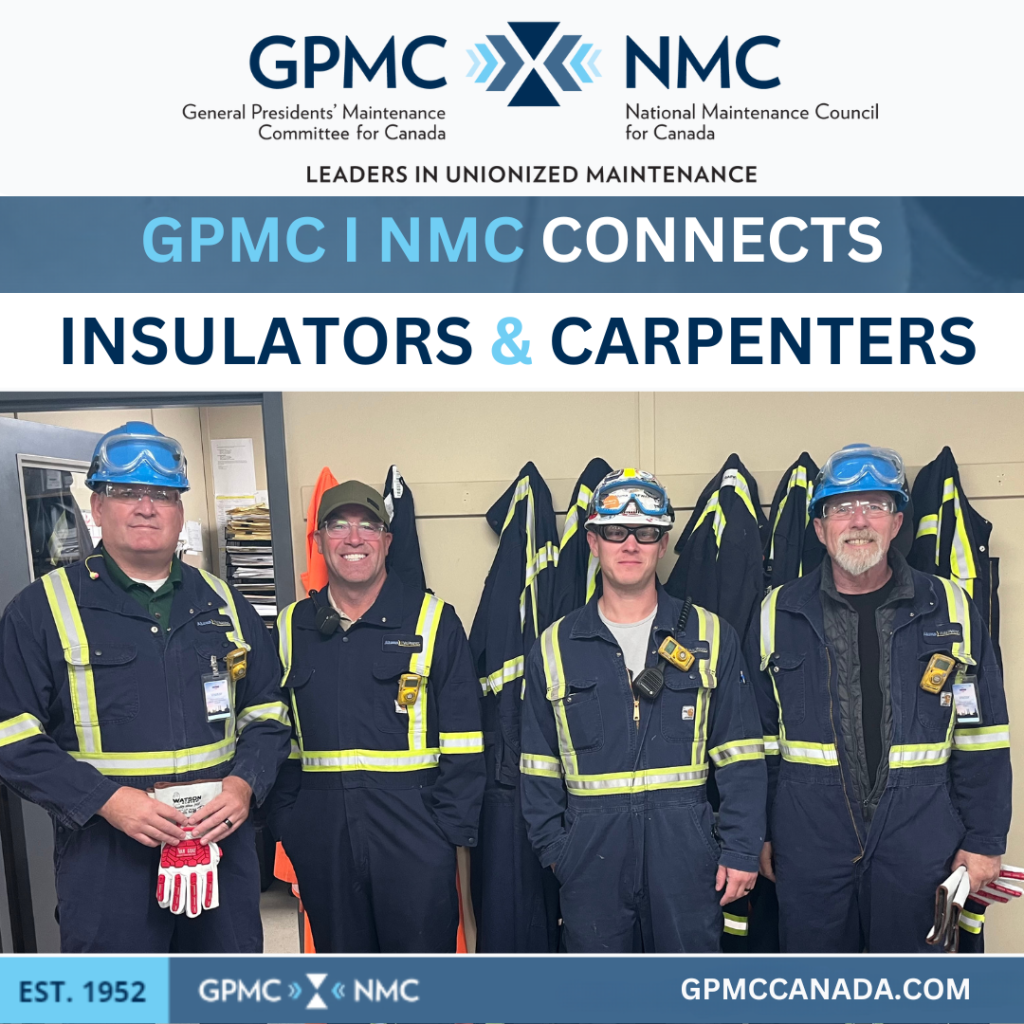The General Presidents’ Maintenance Committee for Canada and National Maintenance Council for Canada (GPMC I NMC) were pleased to connect with insulators and carpenters at Irving Oil during a recent site visit.
