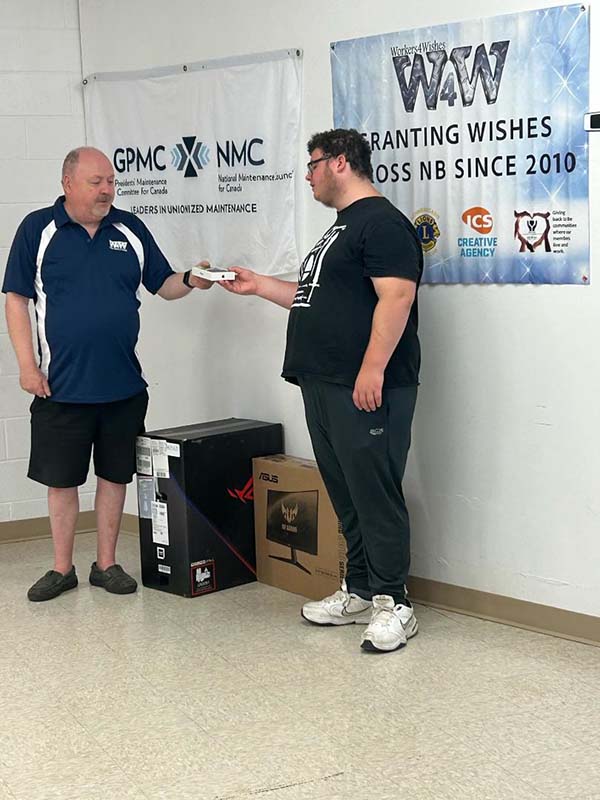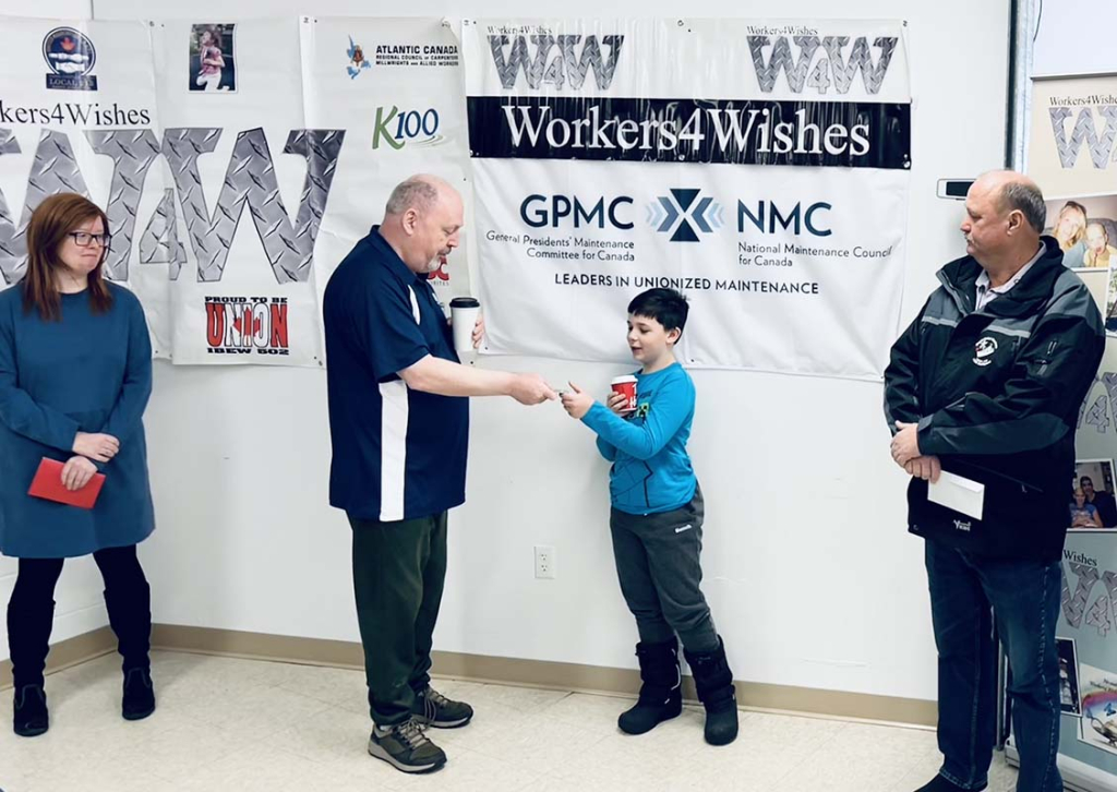 His family spoke of his bravery and positive thinking throughout his journey and how he enjoys helping others. Our major partner was happy to take part in this presentation. Many of our wishes would not be possible without the generosity of the General Presidents Maintenance Committee of Canada and the members they represent all across our great country. Also pleased to work alongside ICS Creative agency in Saint John.
