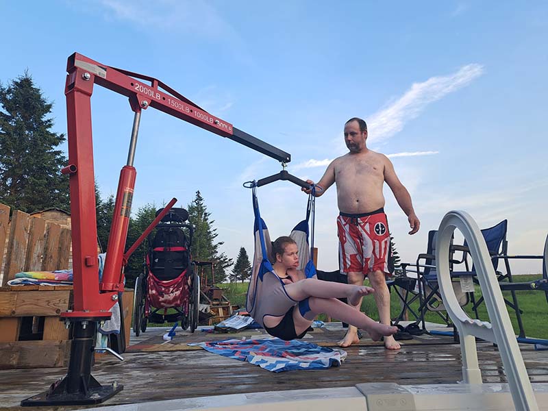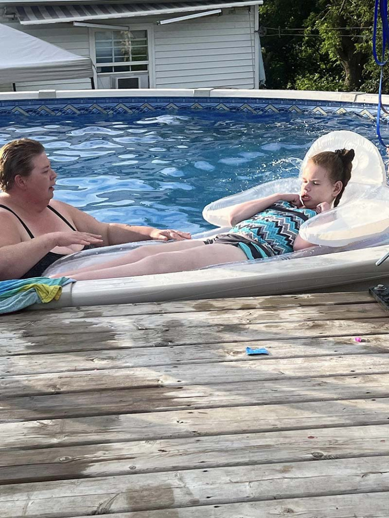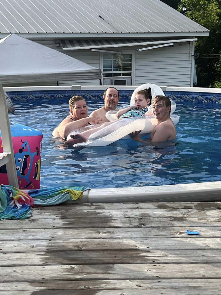 We would like to thank Workers 4 Wishes for Emily’s pool she got in the fall. She has had so much fun swimming with her family and her friends. We got a lift set up so she can easily get in and out. It was an amazing gift for her and she will continue to enjoy it in all this hot weather! We are so thankful for all you do for the kids.